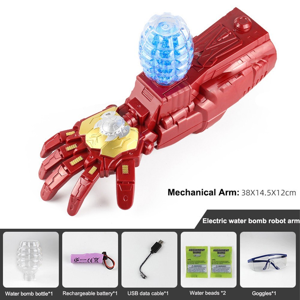 آیرون من یا همان مرد عنکبوتی، محبوب ترین شخصیت ابرقهرمانی در بین کودکان و نوجوانان پسر می باشد. پسرها همیشه جذب فیلم ها و انیمشین های ساخته شده بر اساس این شخصیت می شوند، و همچنین اسباب بازی های این شخصیت نیز برای آن ها بسیار سرگرم کننده است. دستکش آیرون من تیر پرتابی ژله ای مدل 666A؛ برای بعد از 5 یا 6 سالگی مناسب است. برای راه اندازی این اسباب بازی باید ابتدا تیر های ژله ای را در آب قرار دهید، و سپس آن ها را درون مخزن ریخته و به دستکش متصل کنید. تیر های ژله ای این محصول کاملا بی خطر هستند، اما با این حال توصیه می شود تا از شلیک به سمت صورت و چشم انسان و یا حیوانات خودداری شود.
