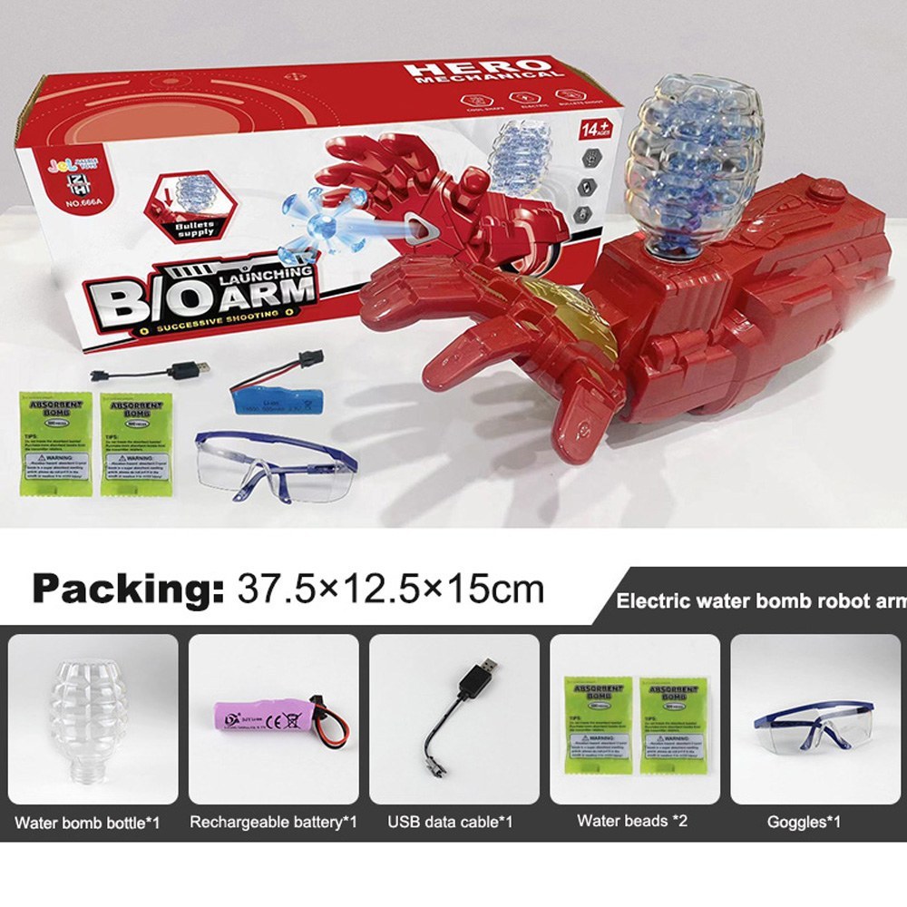 دستکش آیرون من تیر پرتابی ژله ای مدل 666A برای راه اندازی این اسباب بازی ابتدا باید گلوله های ژله را در آب قرار دهید و سپس آنها را داخل مخزن بریزید و به دستکش وصل کنید. پیکان های ژله ای این محصول کاملا بی خطر هستند اما توصیه می شود از تیراندازی به صورت و چشم انسان یا حیوانات خودداری شود.