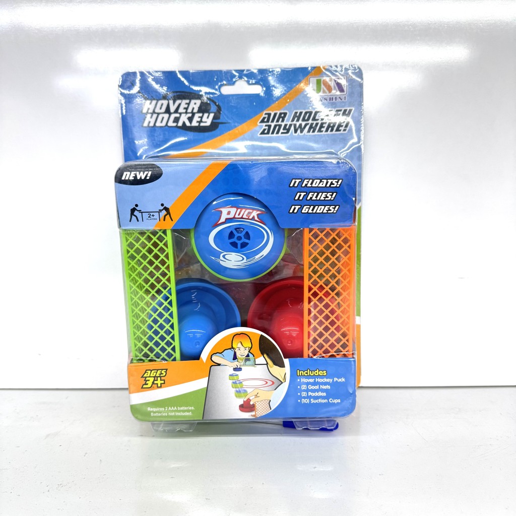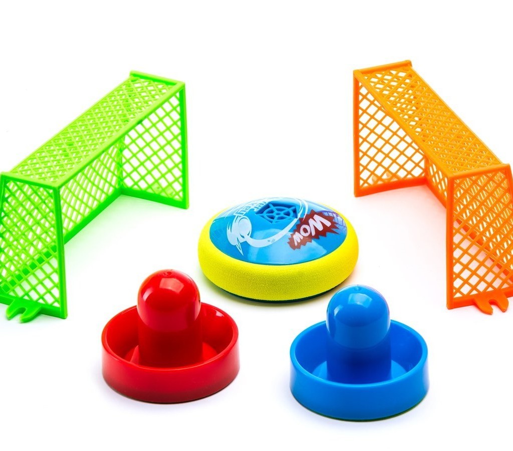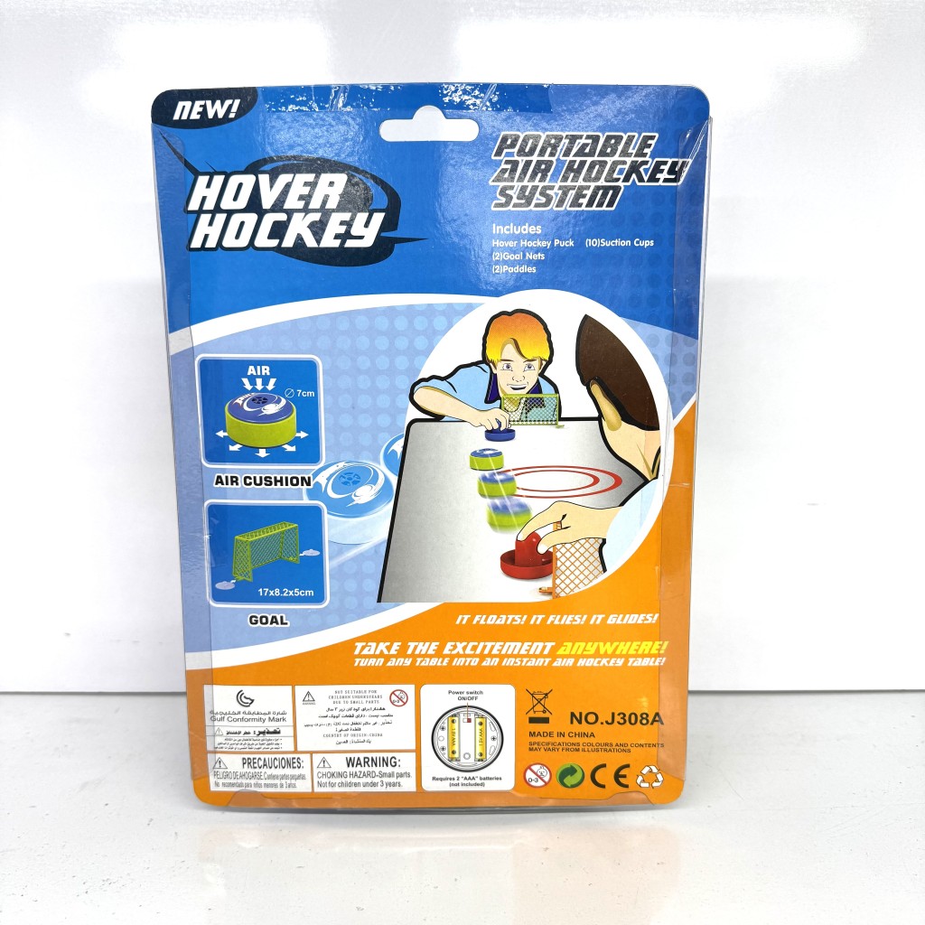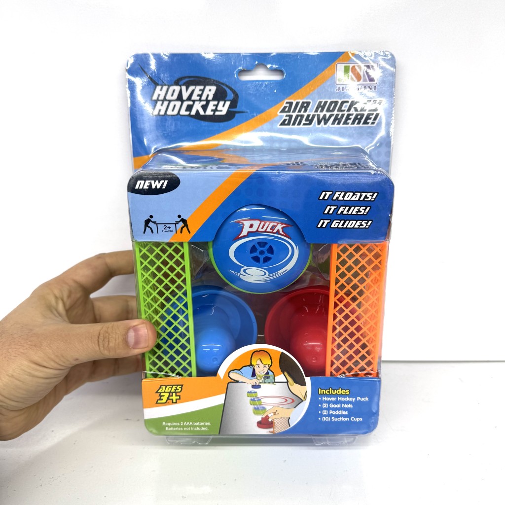 اسباب بازی مهیج هاور هاکی رو میزی Hover Hockey یک بازی دونفره هیجانانگیز که مناسب سنین بالای 3 سال میباشد. دارای یک زمینبازی مشابه هاور هاکی واقعی میباشد. دو نفر مقابل هم به مبارزه میپردازند و با دستهها به توپ فن دار وسط زمین ضربه وارد میکنند.