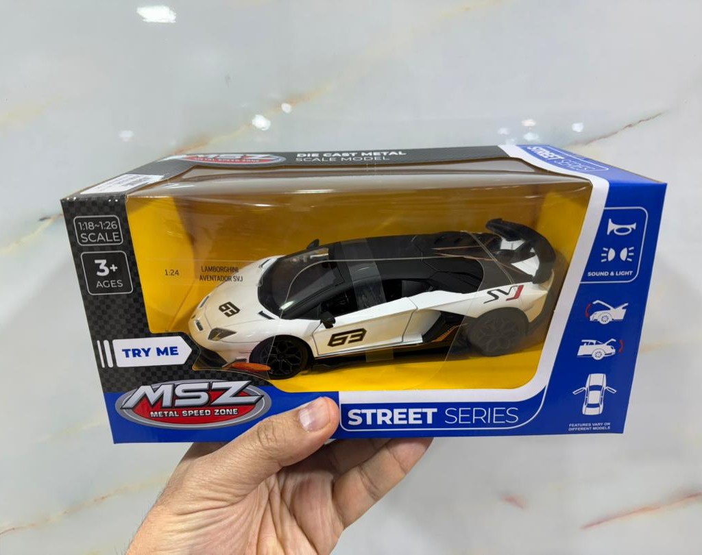 ماکت فلزی LAMBORDHINI AVENTADOR SVJ سایز 1 به 24 موزیکال MSZ