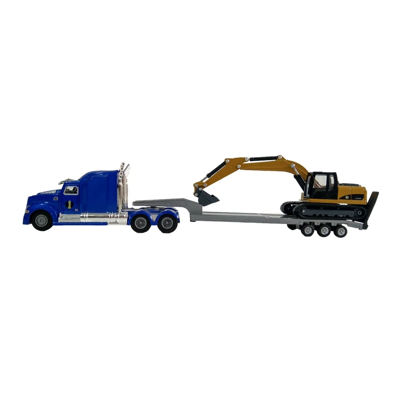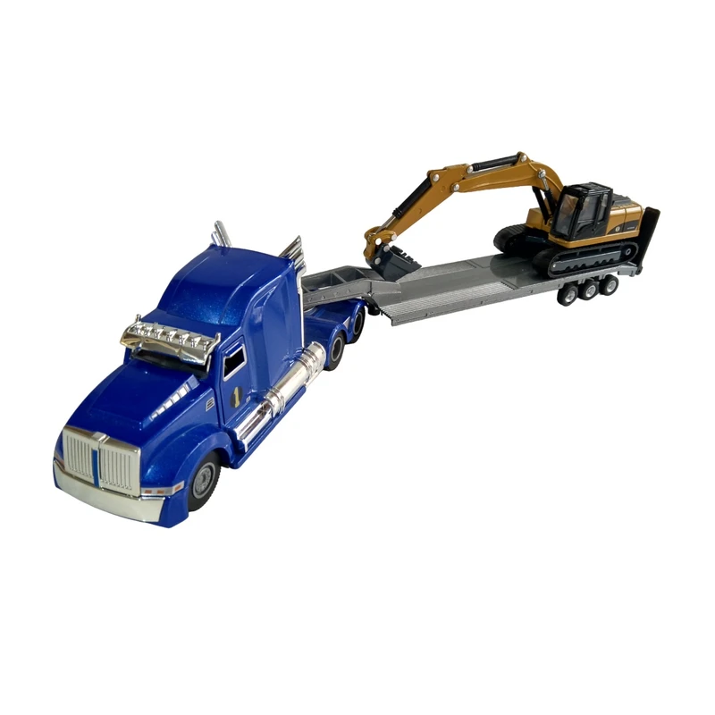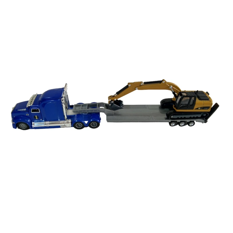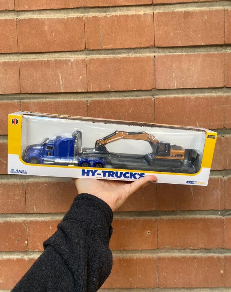 ماکت تریلی به طول 36 سانتیمتر و وزن 375 گرم که با مقیاس 1:50 ساخته شده به همراه ماکت بیل مکانیکی به وزن 160 گرم که جنس کامیون و کفی و فلزی بوده و درهای کابین و کاپوت بازشو میباشد . همچنین کابین بیل مکانیکی و بازوی آن و بیل فلزی میباشند .