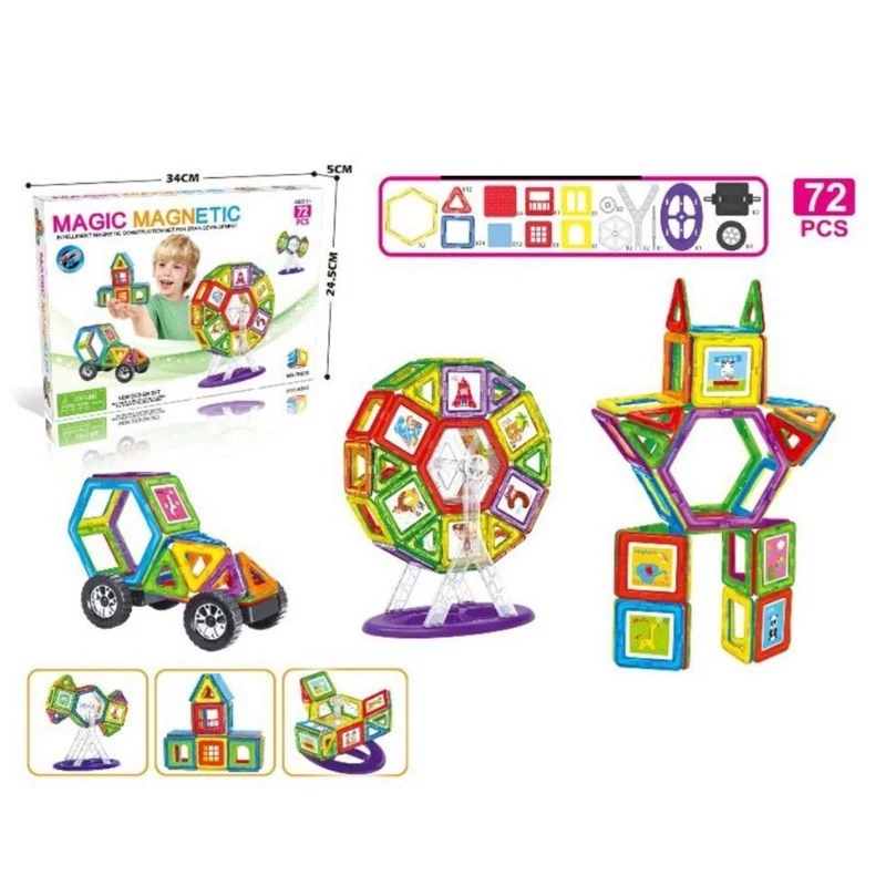 محتویات بسته: 2 عدد شش ضلعی مغناطیسی، 24 قطعه مربع مغناطیسی، 12 قطعه مثلث مغناطیسی، 20 قطعه مربع پلاستیکی، 10 قطعه پلاستیکی ستون و...